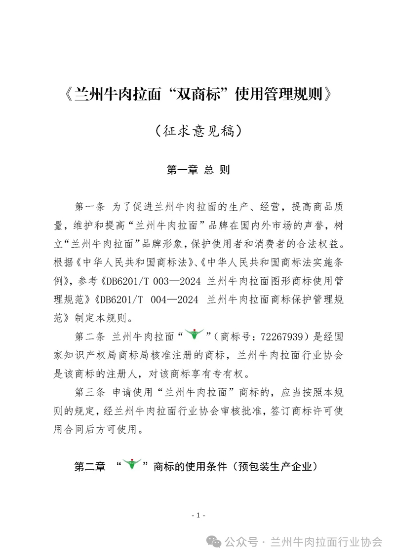 《蘭州牛肉拉面“雙商標(biāo)”使用管理規(guī)則》征求意見稿發(fā)布